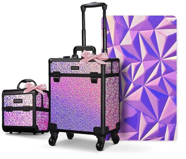 - 2-Piece Makeup Case Set - Byootique Kit includes 1 pcs rolling makeup case and 1 pcs handheld train case. Inspired by mythical mermaid and shimmery shell, this set features iridescent diamond pattern, meeting your needs for cosmetics storage while inspiring you to explore full potential of beauty