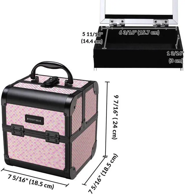 - Train Case Dimension(LxWxH) 7 5/16" x 7 5/16" x 9 7/16"