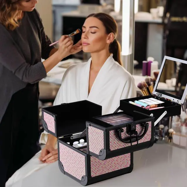 - Lockable & Reinforced Train Case - These robust, securely latched cases safeguard your valuable tools and cosmetics, providing peace of mind wherever you go. Its durable construction ensures years of reliable use, standing up to the rigors of professional life