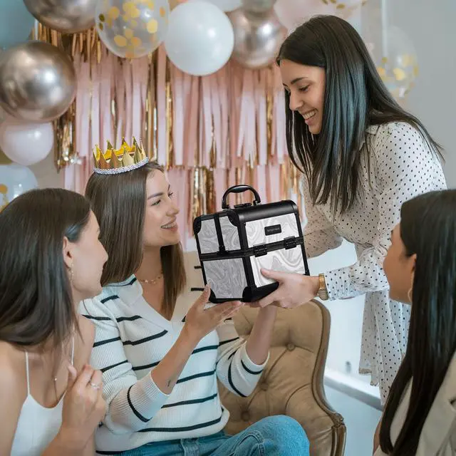 - Lockable & Reinforced Train Case - These robust, securely latched cases safeguard your valuable tools and cosmetics, providing peace of mind wherever you go. Its durable construction ensures years of reliable use, standing up to the rigors of professional life