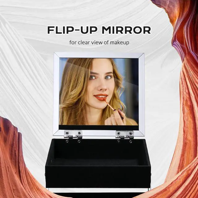 - Portable Cube Case with Mirror - Cube-shaped Makeup Case unfolds to reveal 2 expandable tiers that keep liners, palettes, lipsticks, and jewelry neatly separated. The built-in mirror helps you touch up your look or apply makeup directly from the case, ideal for on-site makeup services where a vanity is unavailable