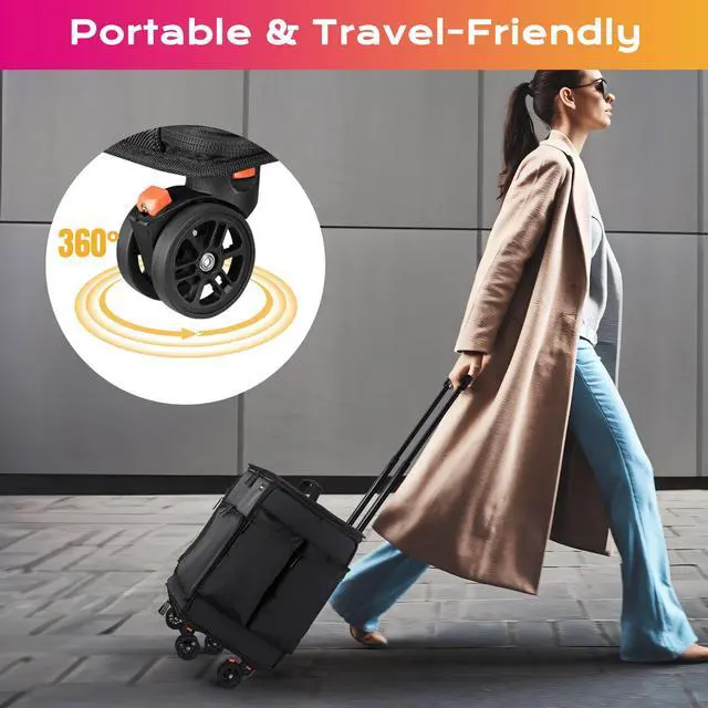 - Portable & Travel-Friendly - Features 4pcs 360-degree rotatable & detachable wheels including 2 are lockable for smooth movement in all directions and easy replacement, along with a telescoping handle and a top handle for easy carrying