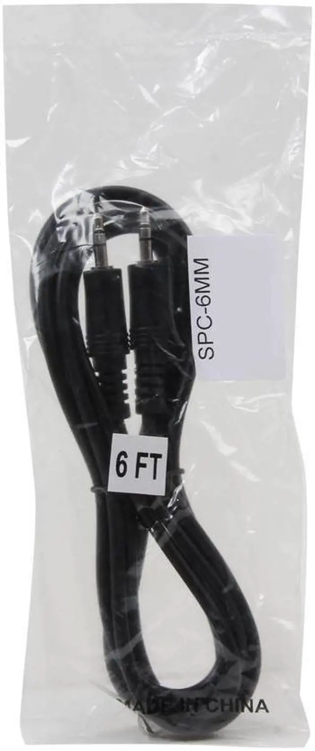 SA SPC-6MM 6 ft. 3.5mm Stereo Speaker Cable - Male To Male, Black Jacket Male to Male
