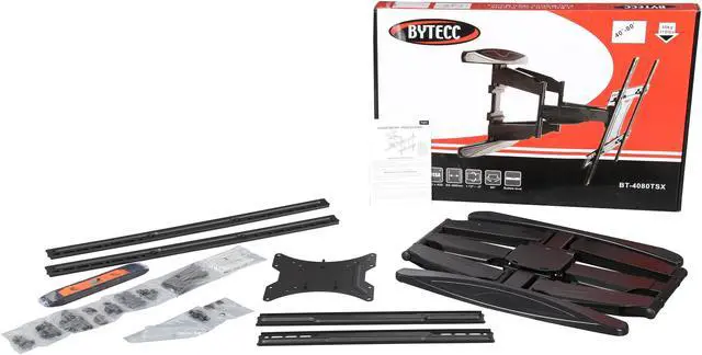 The BYTECC BT-4080TSX TV wall mount gives you a flexible mounting solution. With its low-profile dual articulating arm sets, it can extend your TV up to 496mm out away from the wall, and retract to the wall with a distance of only 53mm.