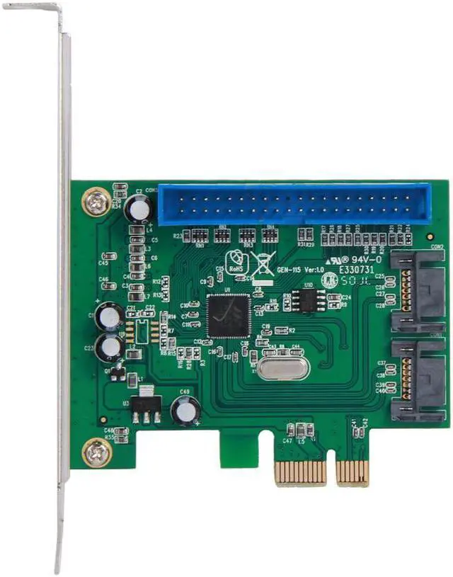 | Specifications | Compliant with PCI Express 2.0 Supports communication speed of 2.5Gbps & 5.0Gbps Compliant with SATA 3.0 specification Compatible with SATA 6G, 3G & 1.5G Hard drive Hot-swap & Hot Plug Supports Port Multiplier FIS based switching or command based switching Supports Native Command Queuing(NCQ) Supports RAID function 0 and 1 Supports ATA/ATAPI-7 Spec, Supports ATA & ATAPI commands Supports DMA protocols, and up to UDMA 150Mbps data transfer rate Supports Master and Slave operations from a single PATA port Supports PCI Low Profile |