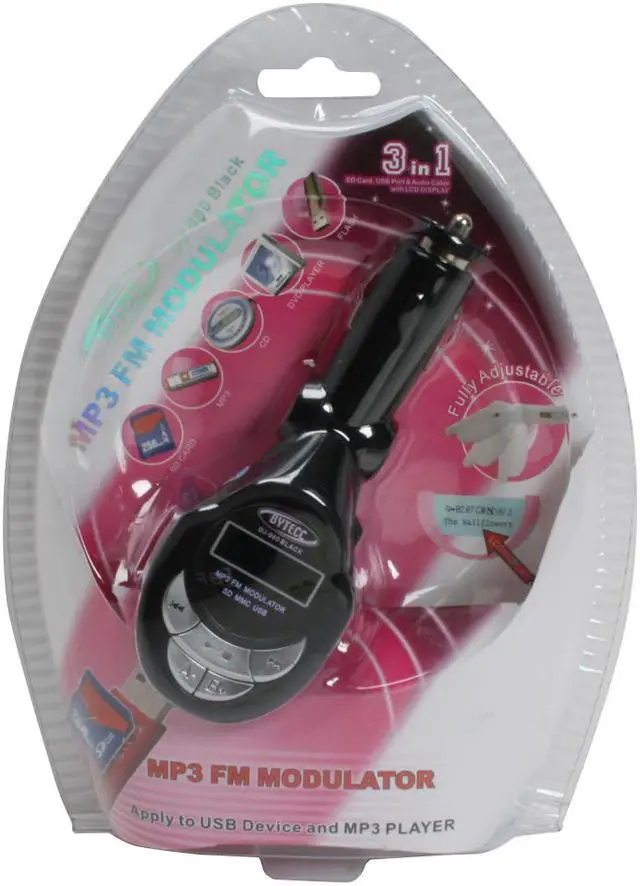 BYTECC DJ-980 BLACK MP3 FM Modulator 3-in-1 Car Charger with Remote Control