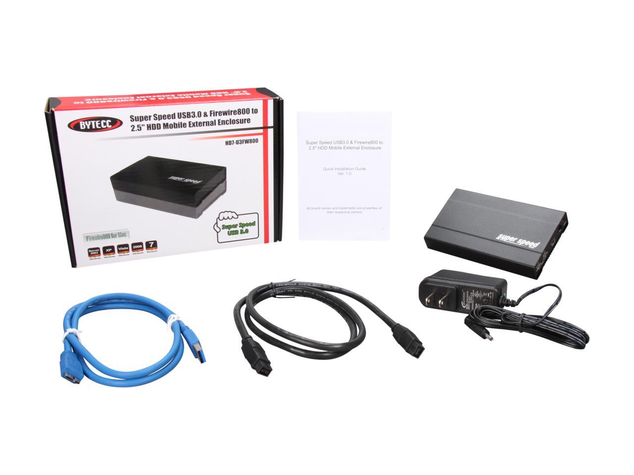 BYTECC HD7-U3FW800 2.5" Black SATA USB 3.0 & Firewire 800 Mobile External Enclosure