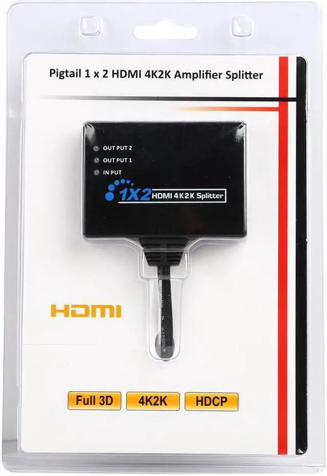 1x2 Ports HDMI AmplifierSplitter, 20inch Pigtail Style 4K2K 1080P, HDCP, 3D DSD Audio and HD (HBR) Audio, Supports