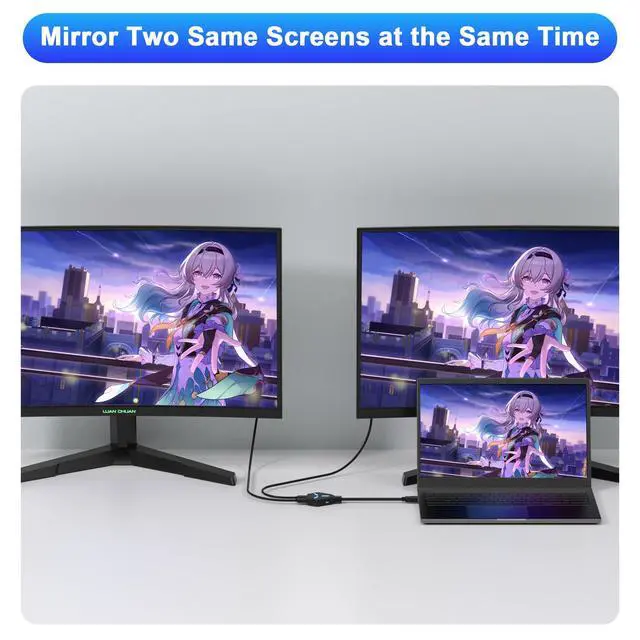 HDMI Splitter 1 In 2 OutThe HDMI splitter 1 in 2 out distributes one HDMI signal to two HDMI displays, This means that the same picture can be viewed in different screen. No lags, flickering or loss of resolution, so you can enjoy impressive high-definition presentations. This dual hdmi adapter for 2 monitors cannot be used for PC to extended monitors, only for mirroring mode. (Only supports displaying the same pictures on 2 monitors at the same time, Support for different size output devices)