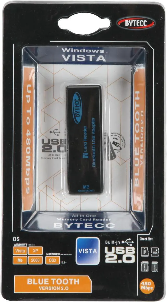 | Features | Enables wireless connectivity between computers and devices Enables connectivity to 7 bluetooth devices at one time Enables wireless personal area network connectivity Bluetooth 2.0 compliant USB2.0 compliant More than 33 feet wireless netwroking range Up to 2.1 kbps data rate Super mini and slim size, easy to carry Easy to install and use |
