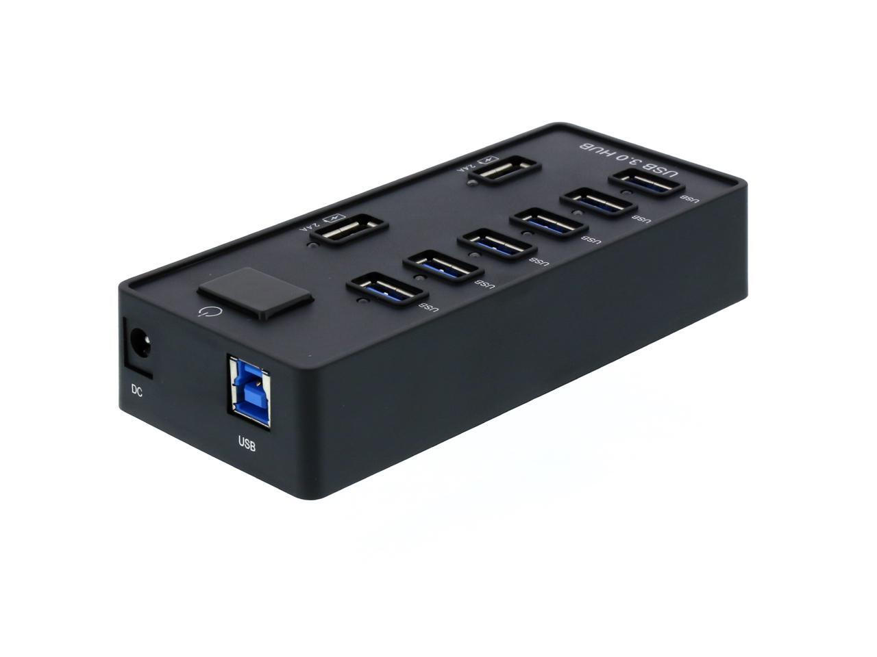 BYTECC U3-6CHUB USB 3.0 Super Speed 6 Ports HUB 5Gbps Data Rate & 2x 2.4a Charging Port With a 60 Watts (12V;5A) Power Adapter