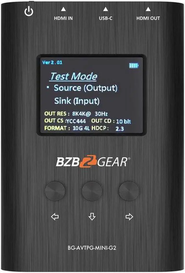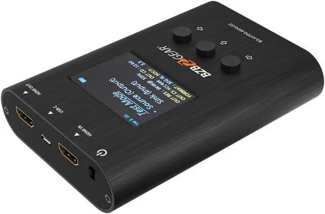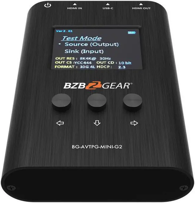 In "Sink" mode, the BG-AVTPG-MINI-G2 functions as an HDMI signal detector, providing essential details about detected signals, such as resolution, frame rate, HDCP version, and other key HDMI characteristics. Its compatibility with HDMI 2.1 standards, adherence to HDCP 1.4 and 2.3 standards, and impressive operational range make it a reliable choice. The device's pocket-sized design and rechargeable battery, offering up to 3 hours of usage, enhance its portability for professionals on the move.