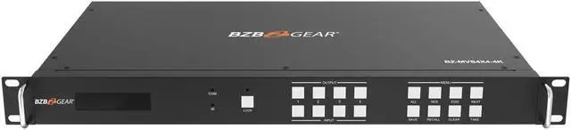 The BZBGEAR BZ-MVS4X4-4K is a matrix video wall controller that seamlessly switches signals from any of the four HDMI sources to any of the four connected HDMI displays. The four outputs can be configured to create a variety of video wall displays such as a 2x2, 1x4, 1x2, 2x1, and 4x1 video wall. Ideal for integrators, professional broadcasters, restaurant owners, and home theater enthusiasts seeking to create high-end video walls, or control multiple video sources and displays with one device.