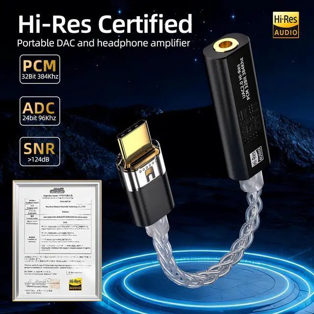 Premium DAC Chip Main Chipset: CX31993+MAX97220,dual dac chips, delivers high-resolution sound, and distortion-free audio with clarity. Audio Decoding Capability: DAC:32-Bit/384KHz ADC:24-Bit/96KHz SNR(Signal-to-Noise Ratio): 124dB@32O THD+N(Total Harmonic Distortion+Noise): -95dB@32O