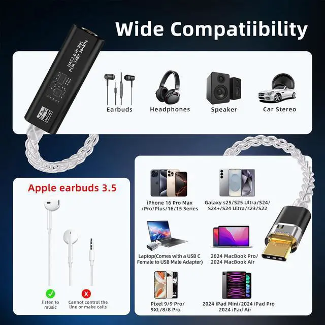 This usb c to 3.5 mm adapter included a USB-A interface for maximum versatility. Works seamlessly with iPhones (USB C interface version), iPads, MacBooks, Android phones, laptops, desktops,