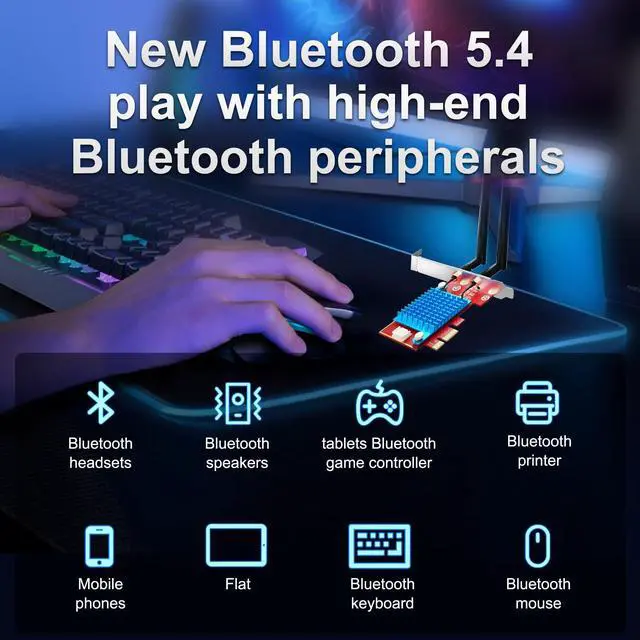 • 5.4 Bluetooth tech,low latency, high capacity, fast rates • Compatible with PCIE slots (x1, x4, x8, x16) • Supports Windows 10/11 (64-bit) drivers