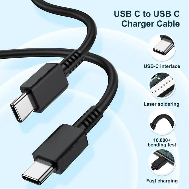 - 10Ft C Charger Cable Fast Charging,The attached USB-C to USB-C cables are 6-foot long, which is long enough to stretch from a wall socket to the sofa or from your in-car charger to the kids tablet in the back seat.