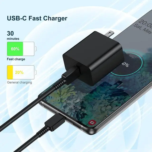 - USB-C power delivery port, USB-C power adapter supports fast charging speed through smart PD 3.0 technology. Charging your Samsung up to approx 60% in just 30 minutes,saving over 1.5hrs for you.