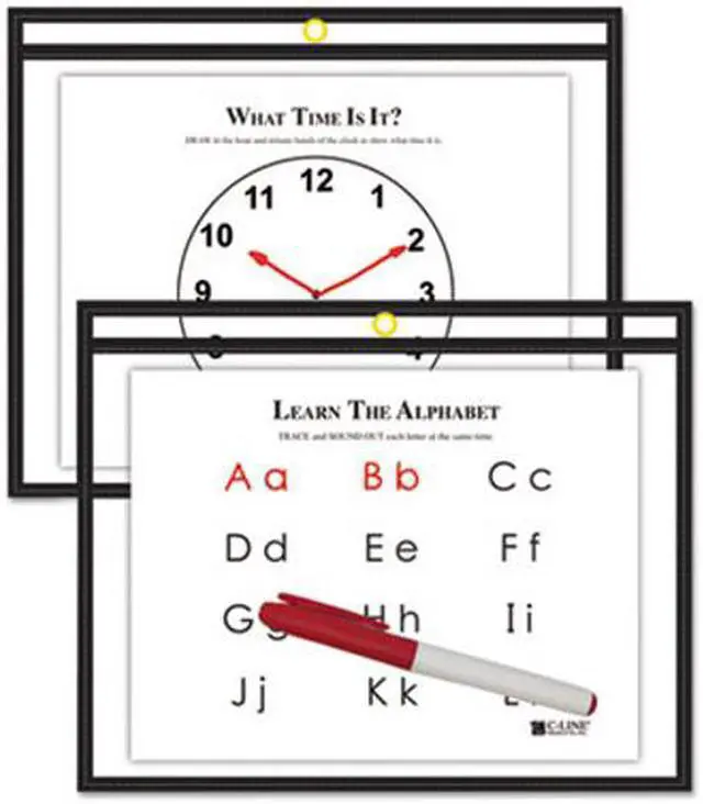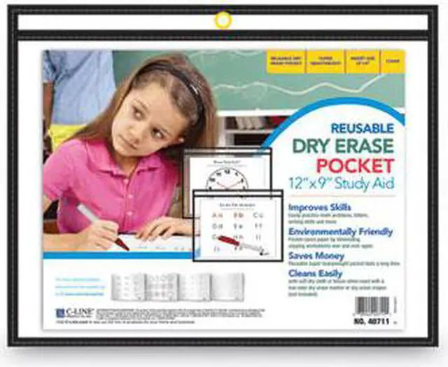 Students can practice math problems, letters, writing skills and more with these 12 x 9 pockets that are open on the long side. Saves paper, time and money by eliminating copying worksheets over and over Reusable super heavyweight pocket lasts a long time Convenient eyelet for hanging Easily clean with a soft dry cloth or tissue when used with a low-odor dry erase marker or dry erase crayon (not included) Black Insert Size: 9 x 12 or smaller sized papers