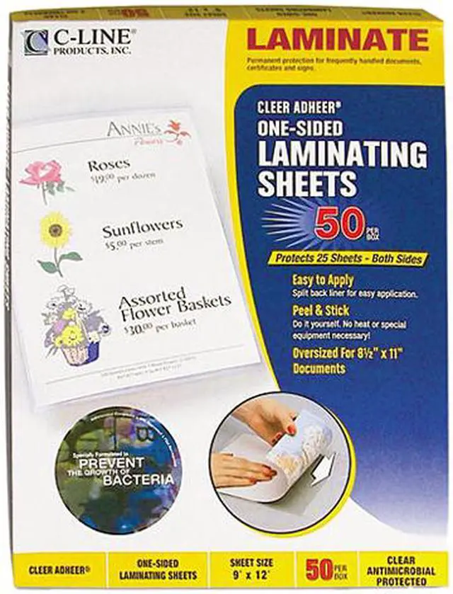 Cleer Adheer Laminating Film offers an ideal way to protect important papers, favorite pictures and more. Do-it-yourself laminating sheets are quick, easy and effective. Simply peel off the packing paper and apply. No heat or special equipment is needed. Sheets are super-strong, transparent, pressure-sensitive, waterproof, and tear-resistant. Made of polypropylene. Will not crack or tear with age.