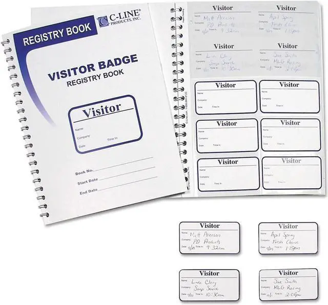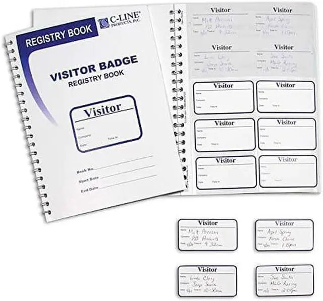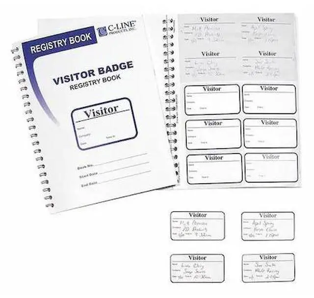 Keep track of visitors in your facility with one convenient book. Guests sign registry book to get their badge and provide a written record of visiting your facility. A carbonless copy is kept in the book, which can provide a record of visitors when all badges are used. Orientation: Horizontal; Name Badge Label Length: 2"; Name Badge Label Width: 3 1/2"; Name Badge Label Color(s): White.