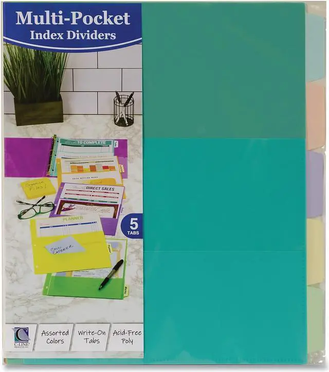 - Each divider features two pockets making it possible to organize pages, business cards and more.