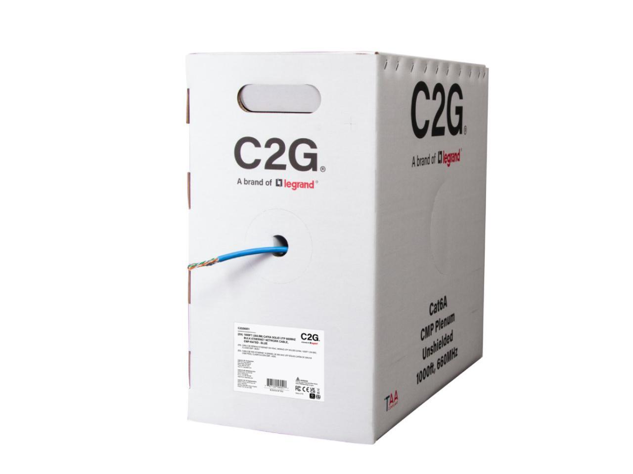 C2G 1000ft Cat6a Bulk Unshielded Ethernet Network Cable - Blue - TAA Compliant C2G56051