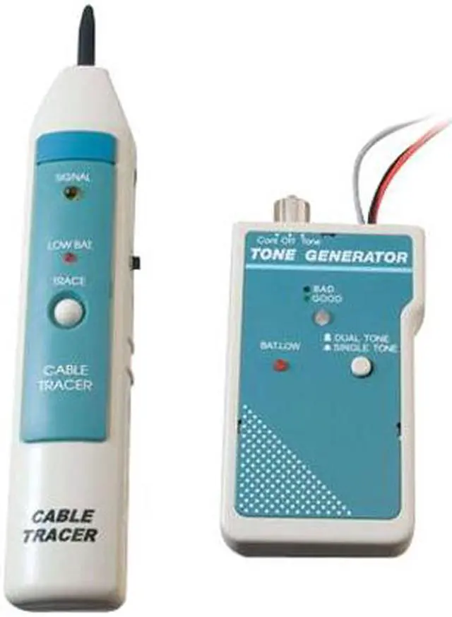 The Tone Generator from Cables To Go is a highly practical network installation and trouble-shooting tool which features a single or multi-tone signal, two test leads and a 4-conductor modular cable. The signal emitted by the Tone Generator can be easily traced by the Probe, even when cables are in a bundle or hidden in a mess of punchdown blocks or wall plates. The Tone Generator and Probe can be used to verify cable continuity, identify wiring faults, determine line polarity and voltage in network (Cat5 and Coax) and modular telephone lines. The Probe is equipped with a tone amplifier and an LED indicator that detects audible frequency tones for accurate tracing and identification of wires.