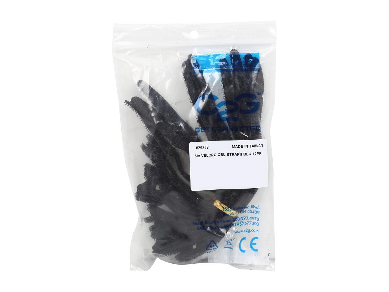 C2G/Cables To Go 29858 6in Hook and Loop Cable Management Wraps Multipack (12 pack) - Black