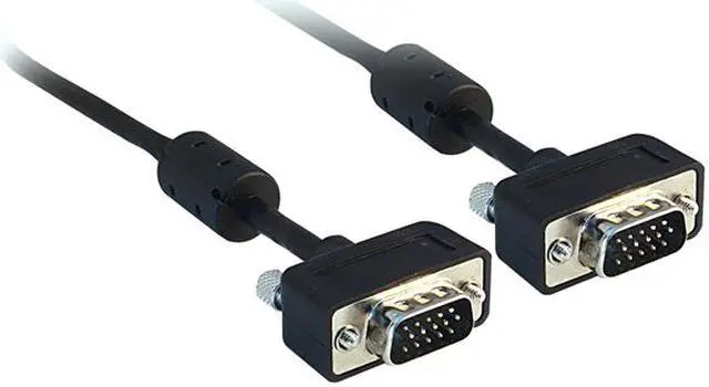 Our 50 foot black Slim HD15 video cable, more commonly referred to as a SVGA male to male cable, is typically used to connect a computer to a computer monitor. This specific cable is a slim version, composed of 32 AWG (American Wire Gauge) coaxial wires, which is easier to route and manage. Ferrite Cores are small magnetic cores wrapped around the ends of the cable. They are used to suppress EMI/RFI electronic noise on the cable by absorbing the unwanted high frequencies and dissipating them. Slim SVGA Monitor Cables are smaller diameter than normal SVGA cables. Slim SVGA Cables also have a smaller hood and ferrite's to fit where other SVGA Cables will not. Our SVGA video cables can handle the lowest resolutions used on computer monitors today all the way up to a maximum of 2048 x 1536.