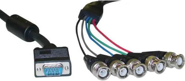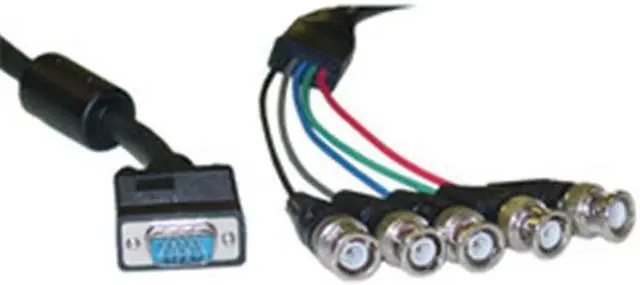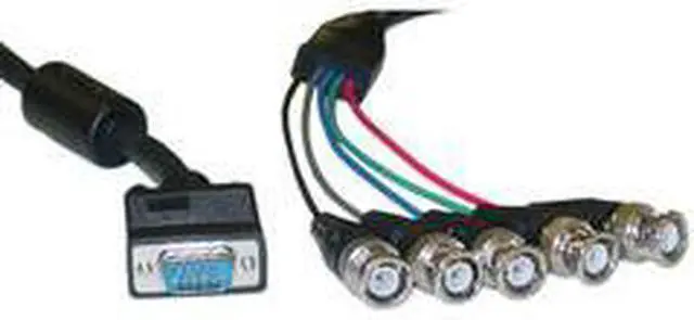 Converts: Converts back and forth between VGA Male Plug and 5 BNC Male Plugs.End 1: VGA Male Plug. End 2: 5 BNC Male Plugs.Wire: 28 AWG. Shield Type: foil+braid.Length: 1 foot. Color: Black.Warranty: Lifetime.