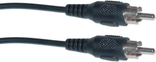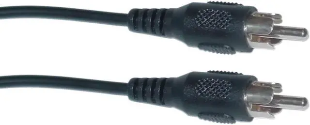 6 foot RCA Audio/Video Cable, RCA Male. Our standard 6 foot RCA cable is an economical way to connect audio and video devices, such as stereo equipment, DVD players, and TVs. This solidly constructed Male to Male RCA patch cable features Copper wiring and fully molded Nickel plated connectors. End 1: RCA Male Plug. End 2: RCA Male Plug. Length: 6 feet. Color: Black. Wire: 26 AWG. Shield Type: spiral. Weight: 0.10 lbs.