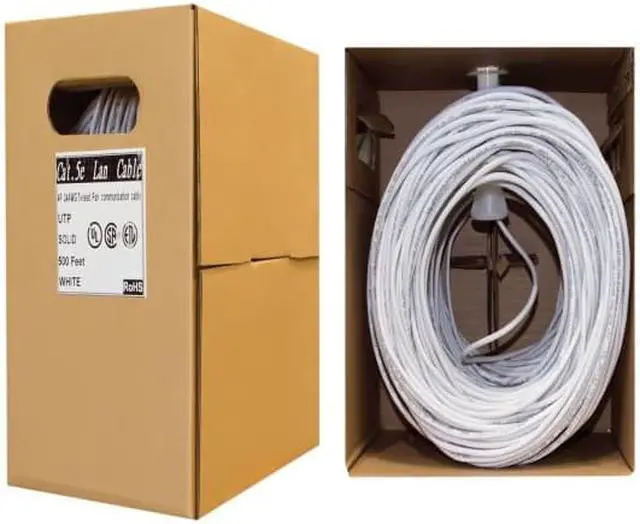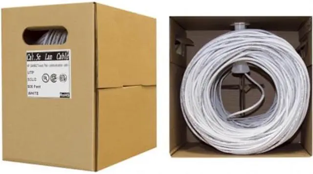 Cable Bulk Cat5e Ethernet Cable, Solid, UTP Pullbox, 500 foot - White