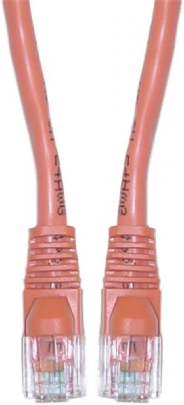 25 foot Cat5e Orange Ethernet Crossover Cable, Snagless/Molded Boot. This Cat5e 25 foot orange crossover cable is used for networking, data transfer and phone lines. For use from a DSL/cable modem directly to the PC and for a direct link from PC to PC. This particular cable is a orange UTP (Unshielded Twisted Pair) patch cable with molded boots (snagless installation) and extra protection for the RJ45 connector and clip. The connectors are wired to the T568B standard. The individual conductors are 24 AWG (American wire gauge) stranded pure copper. Cat5e patch cables are stranded to improve flexibility. Pure copper conductors provide the best signal possible. The RJ45 plug features gold connectors to prevent corrosion thus ensuring a longer cable life. Our Cat5e Ethernet patch cables exceed the EIA/TIA-568-C standard.