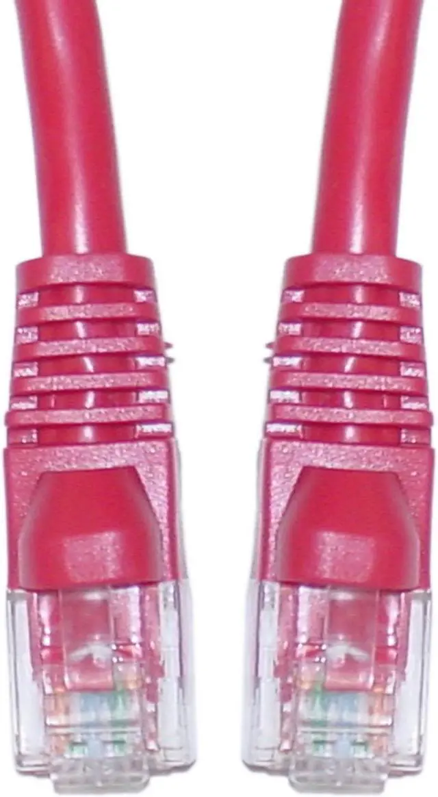 5 foot Cat5e Red Ethernet Crossover Cable, Snagless/Molded Boot. This Cat5e 5 foot red crossover cable is used for networking, data transfer and phone lines. For use from a DSL/cable modem directly to the PC and for a direct link from PC to PC. This particular cable is a red UTP (Unshielded Twisted Pair) patch cable with molded boots (snagless installation) and extra protection for the RJ45 connector and clip. The connectors are wired to the T568B standard. The individual conductors are 24 AWG (American wire gauge) stranded pure copper. Cat5e patch cables are stranded to improve flexibility. Pure copper conductors provide the best signal possible. The RJ45 plug features gold connectors to prevent corrosion thus ensuring a longer cable life. Our Cat5e Ethernet patch cables exceed the EIA/TIA-568-C standard.