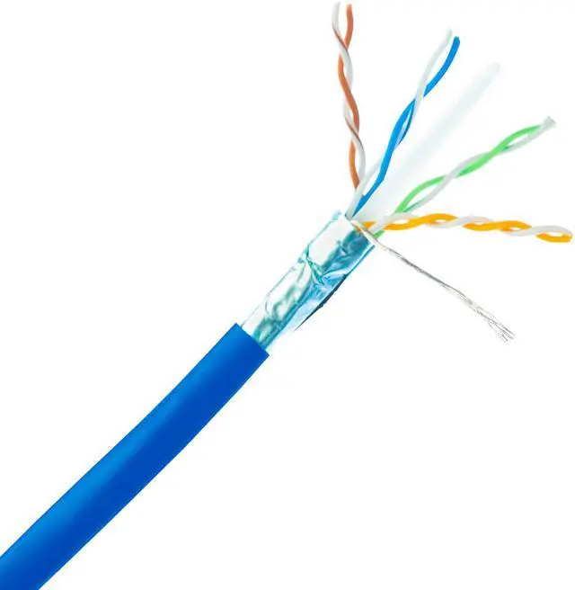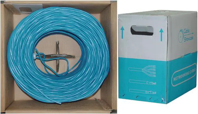 1000 foot Shielded Cat6 Blue Ethernet Cable Pull Box, Stranded Copper, STP (Shielded Twisted Pair). Our bulk 1000 foot stranded Cat6 Shielded Ethernet cable comes in an easy to use pull box and is ideal for the person looking to make a variety of patch cables over a larger job or for one looking to be prepared to handle unexpected situations on the network infrastructure. Cat6 cables are used for networking, data transfer, and phone lines. Cat6 Cable is used in network applications and has been designed specifically for Gigabit Ethernet applications. They perform at high-data transfer rates, and work with ATM and gigabit speed products. This particular cable is a blue STP (Shielded Twisted Pair) stranded cable. The individual conductors are 24AWG (American wire gauge) stranded pure copper for improved flexibility. Pure copper conductors provide the best signal possible. Our Cat6 Ethernet cable exceeds the EIA/TIA-568-C standard. End 1: Bare end. End 2: Bare end. Length: 1000 feet. Color: Blue. Wire: 24 AWG. Shield Type: foil. Weight: 34.00 lbs.