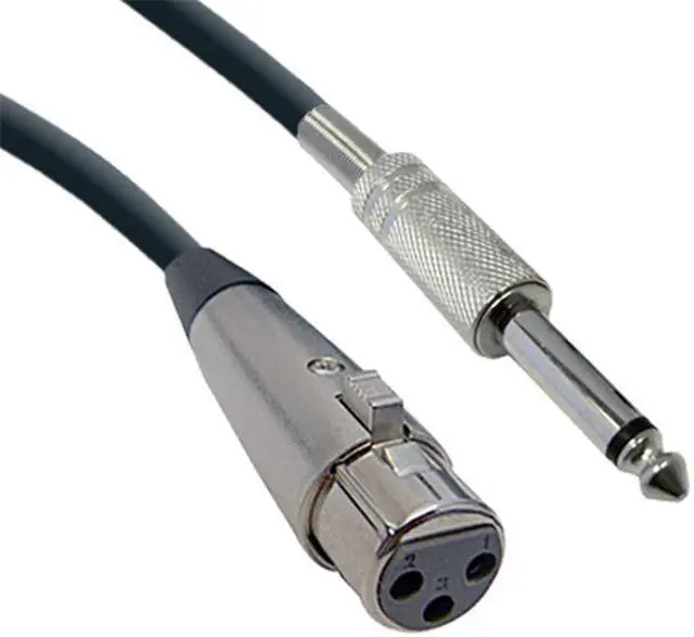 50 foot XLR Female to 1/4 inch Mono Male Audio Cable. Our 50 foot 3-Pin XLR Female to 1/4 Inch Mono Male Audio Cables are built with high quality XLR and 1/4 inch connectors and audio cable for maximum signal transfer and RF/EMI noise resistance. The high density shield blocks electrostatic noise, eliminating annoying hum, buzz, radio interference and noise. Converts: Converts back and forth between XLR Female Jack and 1/4 inch Mono Male Plug. End 1: XLR Female Jack. End 2: 1/4 inch Mono Male Plug. Length: 50 feet. Color: Black. Wire: 22 AWG. Shield Type: spiral.