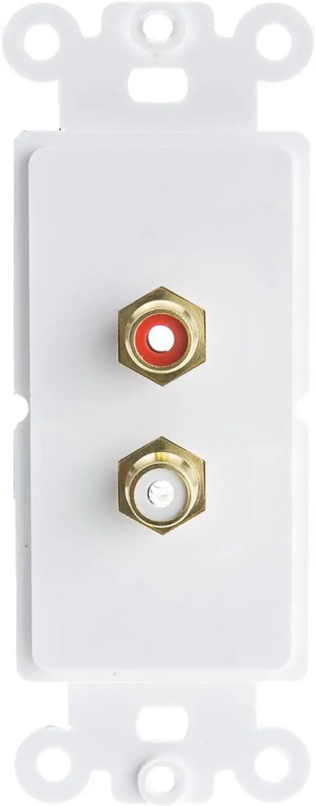 Connection: RCA Left/Right Female Jacks. Connection: RCA Left/Right Female Jacks.Conversion from in-wall RCA cables to RCA audio sources and destinations.Color: White. Weight: 0.05 lbs.Warranty: Lifetime.
