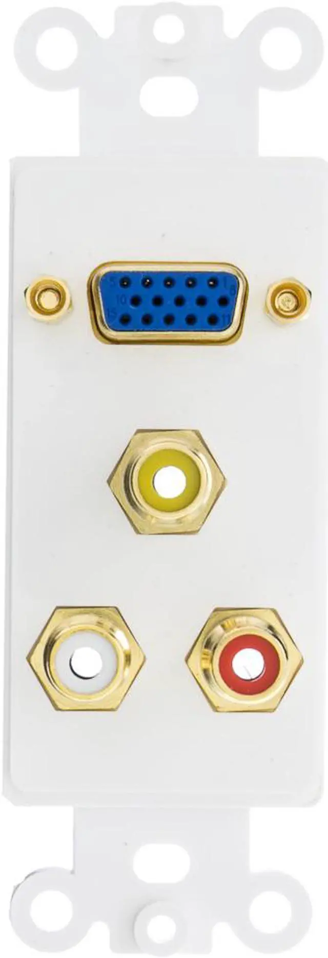 Decora Wall Plate Insert, White, 1 VGA Coupler and 3 RCA Couplers (Red/White/Yellow), HD15 Female and RCA Female