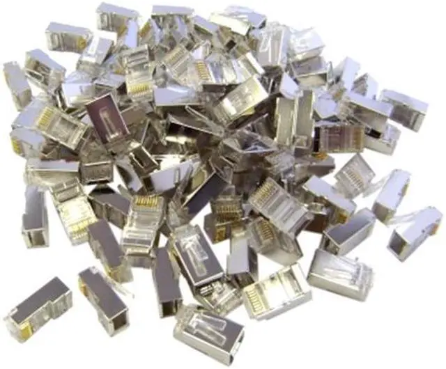 Shielded Cat6 RJ45 Crimp Connectors for Solid and Stranded STP Cat6 Cable, STP, 8P8C, 100 Pieces.