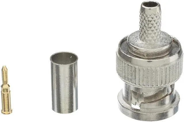 This is a 3-piece BNC male crimp connector for use with RG58 cable.