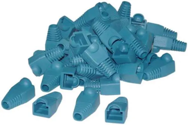 RJ45 Strain Relief Boots, Blue (50 Pcs Per Bag). These boots are designed to fit over the end of a CAT-5 / CAT-6 to relieve the strain on the connector and to clean up the cosmetics of the cable. The boots come in Blue, Black, Beige, Red, and Green.Warranty: Life Time for all products, including our entire premium line of cable showcase products. If our technical support team isn't able to find a solution for you, we'll be happy to exchange the item for a new one, even if multiple years have passed.
