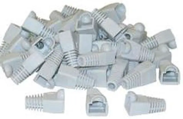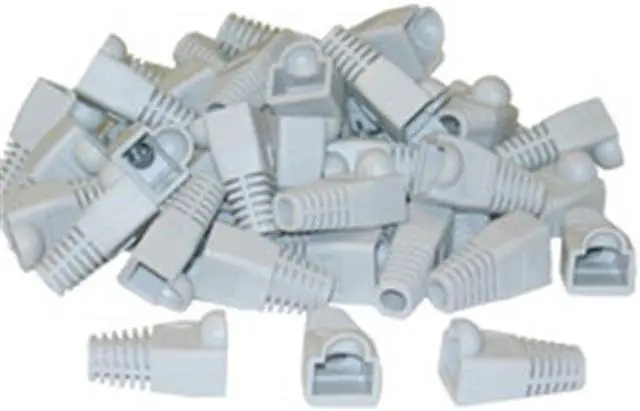 RJ45 Strain Relief Boots, Gray (50 Pcs Per Bag). These boots are designed to fit over the end of a CAT-5 / CAT-6 to relieve the strain on the connector and to clean up the cosmetics of the cable. The boots come in Gray, Black, Orange, Purple, Green, Blue, Red, Pink, Yellow, and White.