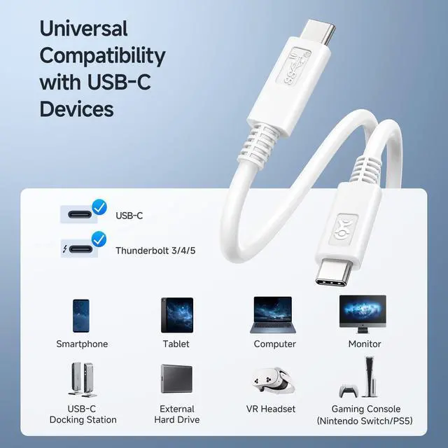 ![Alt view image 4 of 7 - Cable Matters [USB-IF Certified] 10 Gbps Gen 2 USB C Cable - 3.3ft / 1m, Supports Up to [4K@60Hz Video, 100W Charging, 10Gbps Data Transfer], White](https://c1.neweggimages.com/productimage/nb640/C2JJD2512240JXQJV16.jpg)