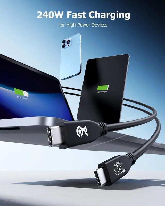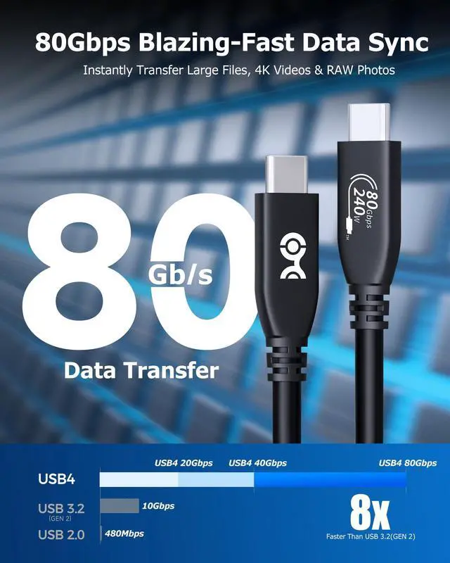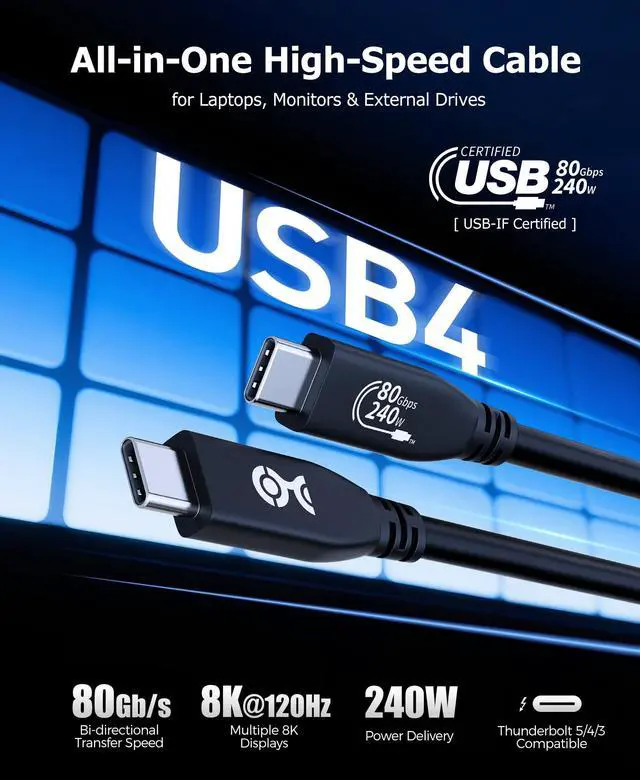 ![Alt view image 7 of 7 - [USB-IF Certified] 80Gbps USB 4 Cable - 3.9ft, Supports Up to [8K@120Hz / 4K@480Hz Video, 240W Charging, 80Gbps Data Transfer] USB4 Cable, Black, Compatible with Thunderbolt 5/4, MacBook](https://c1.neweggimages.com/productimage/nb640/C595D2603270WG3VS30.jpg)