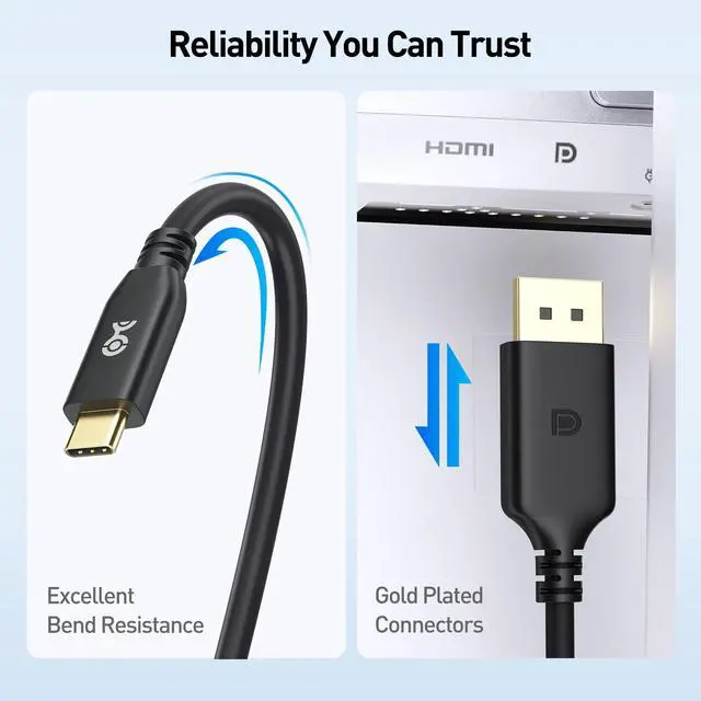 ![Alt view image 6 of 7 - [VESA Certified] 40Gbps Unidirectional USB C to DisplayPort 2.1 Cable - 6.6ft, Supports DP40, 8K@120Hz / 4K@480Hz (Thunderbolt 4 to DisplayPort Cable) - Not for Portable USB-C Monitor](https://c1.neweggimages.com/productimage/nb640/C595D2603290UWV2PDA.jpg)