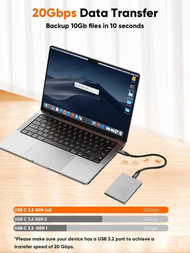 This USB 3.2 USB C Cable with 20Gbps Data Transfer speeds, you can move large files in seconds, offering performance more than four times faster than standard USB 3.0.