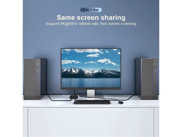 - USB-C 8K Bi-Direction Video Transmissions&Data&Power Switch/Splitter:The USB-C switcher allow you to connect two USB-C sources to one USB-C display or connect one USB-C source to toggle between two displays,(Two displays CANNOT display simultaneously)