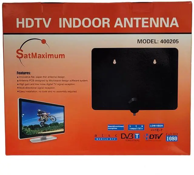 Enjoy crystal-clear reception and free access to local channels with this powerful 45-mile indoor HDTV antenna. Featuring a detachable RG6 cable, this flat, reversible antenna supports VHF/UHF/FM signals, delivering your favorite shows in 4K Ultra HD, 1080p, and ATSC 3.0 without monthly fees. Its long-range reception is perfect for pulling in major networks like ABC, CBS, NBC, PBS, FOX, and more. Easy plug-and-play installation lets you start watching news, sports, and weather in minutesno power supply or complicated setup required. Ideal for mounting behind or above your TV for a clean, discreet look.