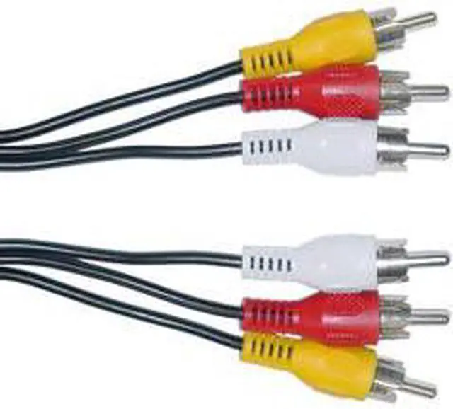 This 50 foot RCA audio and video cable features stereo audio and component video. The connectors consist of three nickle male RCA plugs on each end of the cable and the wiring is composed of copper for reduced resistance. These solidly constructed cables are an economical solution for hooking up VCRs, DVD players and other older home theater electronics that make use of RCA jacks for stereo audio and composite video to TVs.